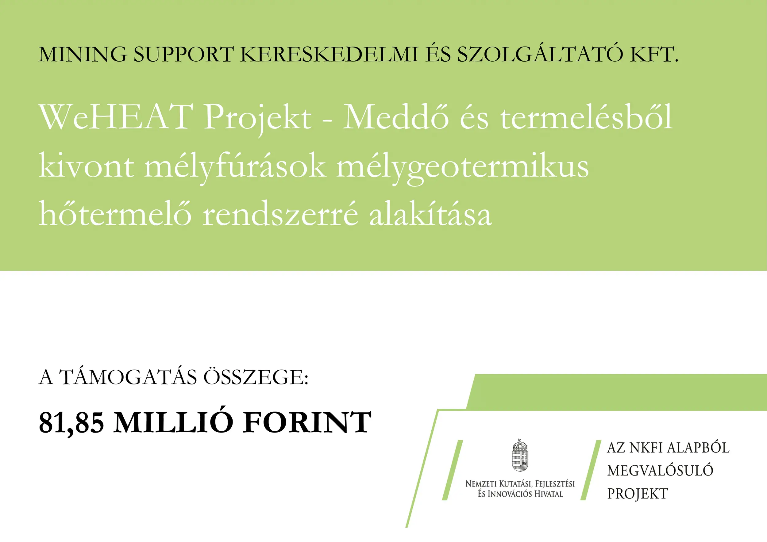 Projekt címe: WeHEAT Projekt – Meddő és termelésből kivont mélyfúrások mélygeotermikus hőtermelő rendszerré alakítása